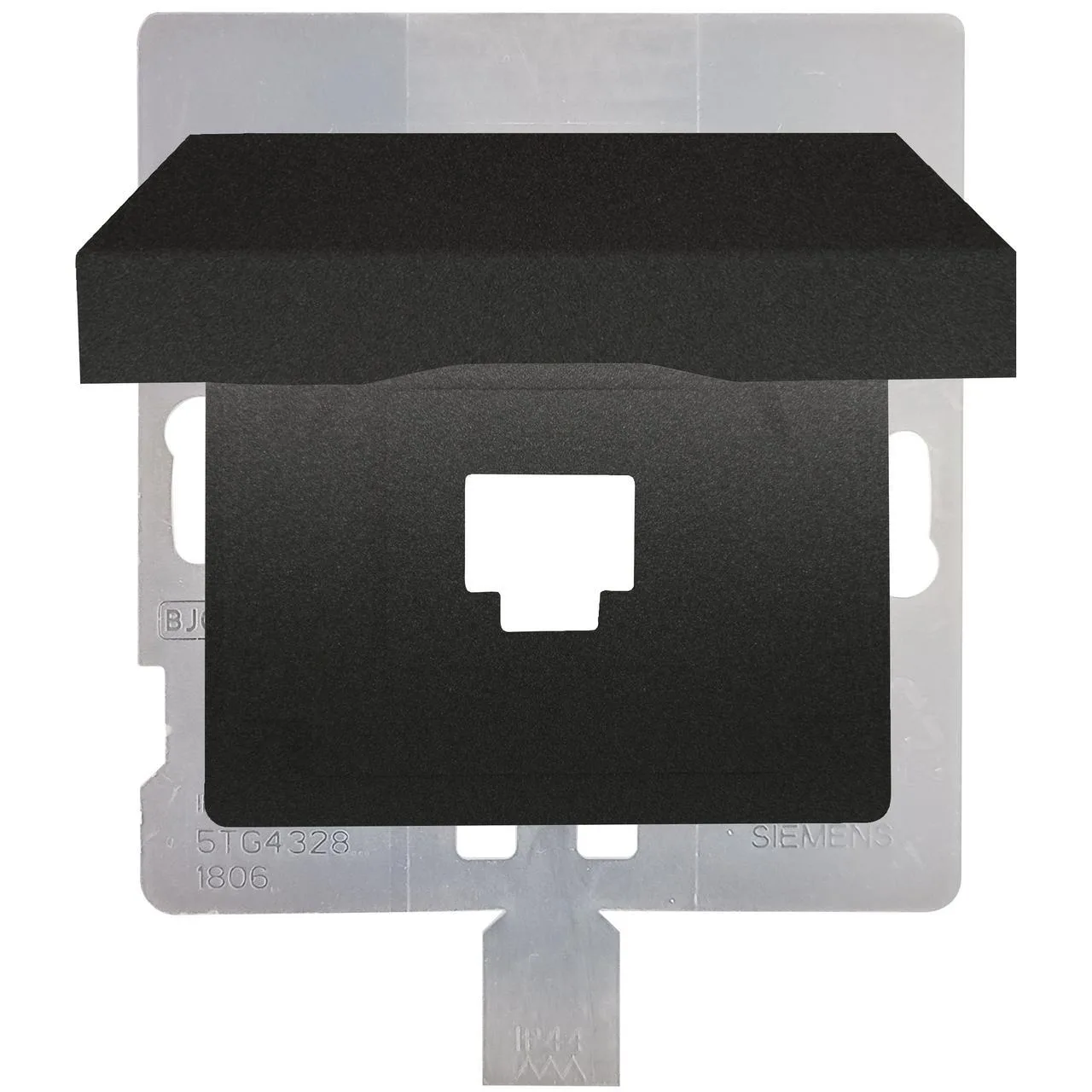 Serie Miro. Tapa con pretapa para conector 1 RJ45. Producto acabado en color carbono metalizado. Incluye 2 juntas de goma para garantizar la estanqueidad IP44. La serie BJC Miro nace bajo la influencia de la escuela Bauhaus, con unas lineas y ángulos rectos. Serie de alta calidad, presenta unos acabados con materiales exclusivos de cristal, metal y madera. La linea cromada de la tecla da una personalidad única a la serie.
